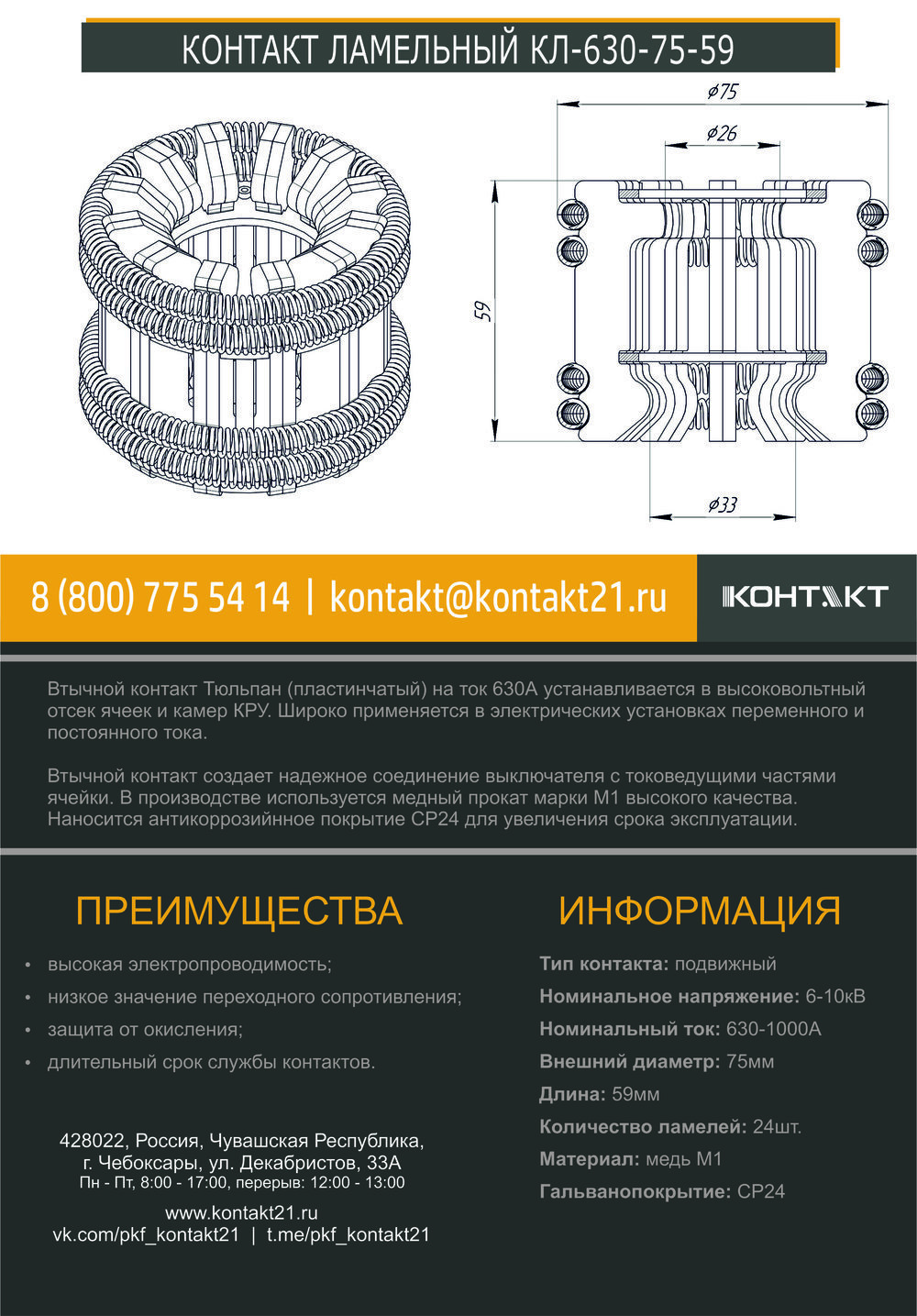 Втычной контакт Тюльпан (пластинчатый) на ток 630А устанавливается в высоковольтный отсек ячеек и камер КРУ. Широко применяется в электрических установках переменного и постоянного тока.