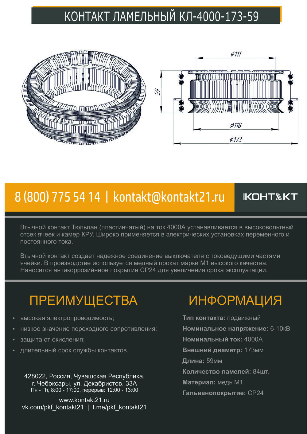 Втычной контакт Тюльпан (пластинчатый) на ток 4000А устанавливается в высоковольтный отсек ячеек и камер КРУ. Широко применяется в электрических установках переменного и постоянного тока.