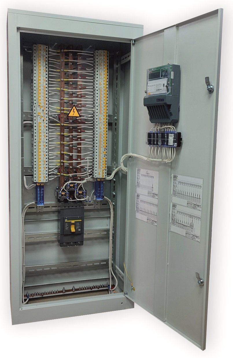 Вводно-распределительное устройство предназначены для приема, распределения и учета электроэнергии в сетях 380/220B трехфазного переменного тока частоты 50Гц, а также для защиты линий при перегрузках и коротких замыканиях.