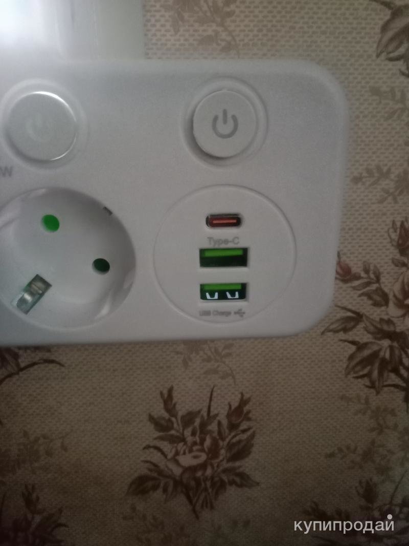 Продам новую розетку накладную четырехместную открытой установки с заземлением, с подсветкой 5Вт, 2 стандартных и type C USB разъёмами.