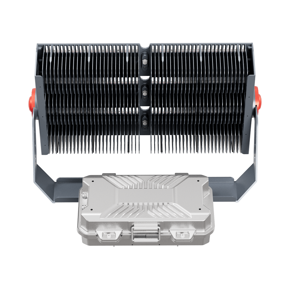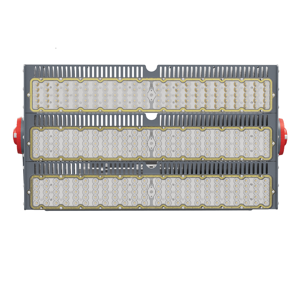 Трехмодульный светодиодный прожектор D680-1850W-UN представляет собой многоцелевой модульный осветительный прибор мощностью 1850 Вт в алюминиевом корпусе. Устанавливается на любую ровную поверхность с помощью поворотного кронштейна, применяется как для внутреннего, так и для наружного освещения. Основное применение прожектора в составе высоко мачтовых осветительных установок.