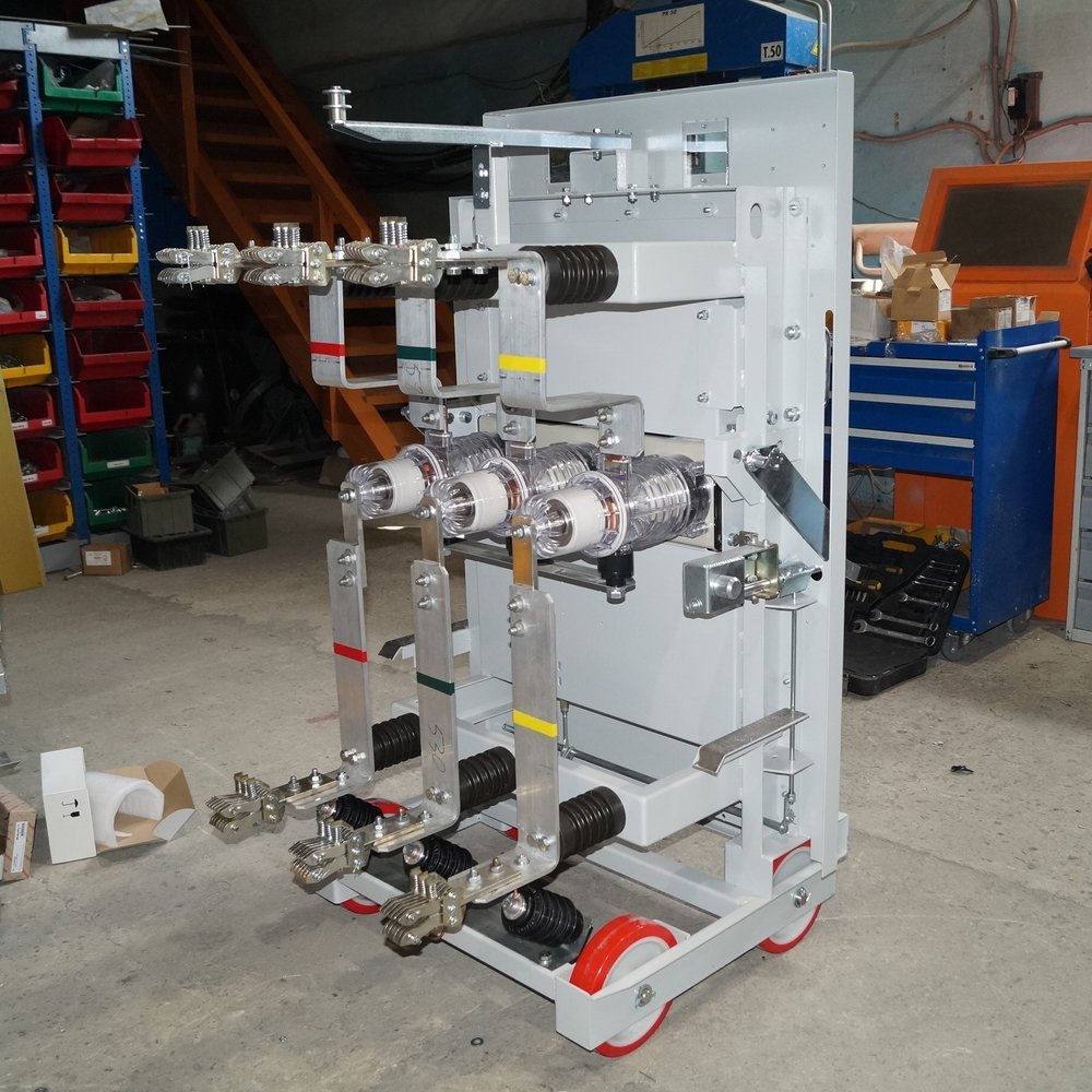 Выкатные элементы КРУ К-12М с вакуумными выключателями предназначены для реконструкции комплектных распределительных устройств серии КРУ К-12М. Рама ВЭ изготовлена из прокатного угольника 50х50х5 и листовых деталей из 4, 6, 8 мм г/к стали.